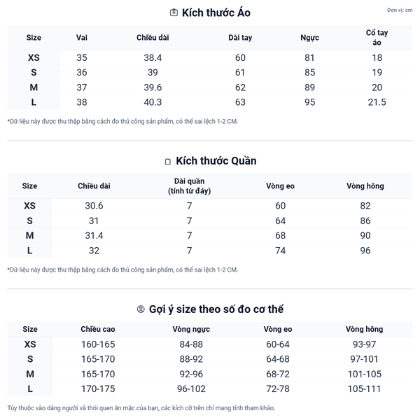Thành phần chất liệu (Áo & Quần): 91% Polyester, 9% Elastane