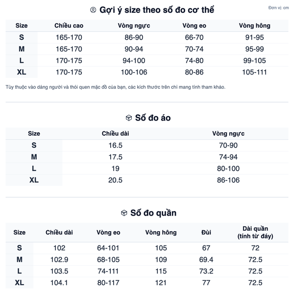 Hướng dẫn giặt: Giặt máy, không giặt khô