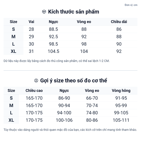 Hướng dẫn giặt ủi: Giặt máy, không giặt khô, dùng chất tẩy rửa dịu nhẹ
