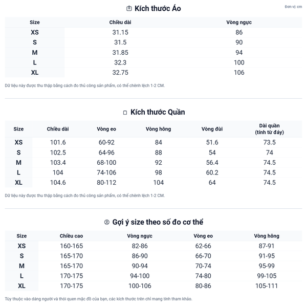 Thành phần chất liệu (áo & quần): 95% Polyester, 5% Elastane