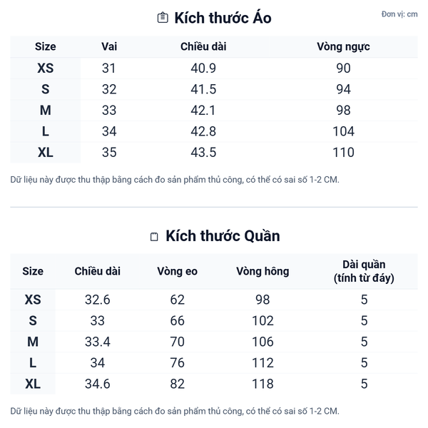 Thành phần (cho cả áo & quần): 100% Cotton